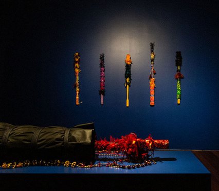 Artwork on right: Nina Oberg-Humphries, TA'AI, 2020, The Physics Room.